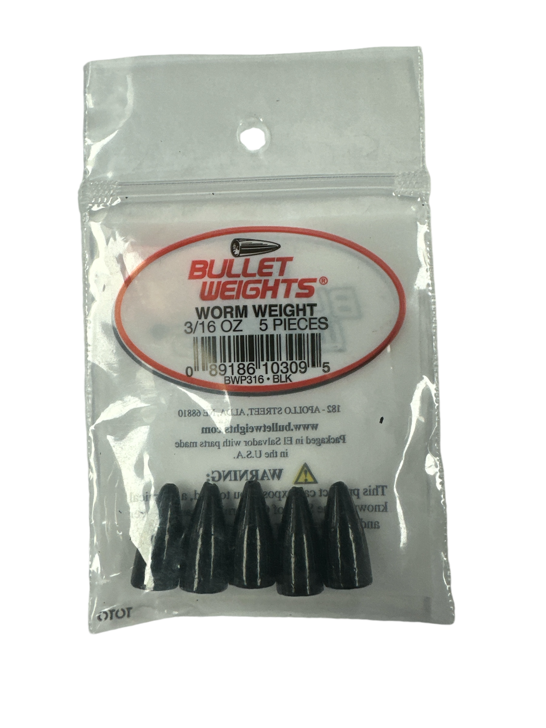 Bullet Weights, Worm Leads 5 Per Bag